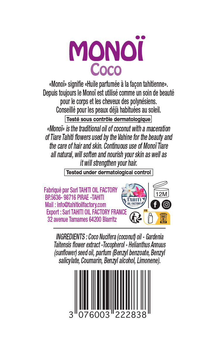 • Matière: 99% Monoï de Tahiti