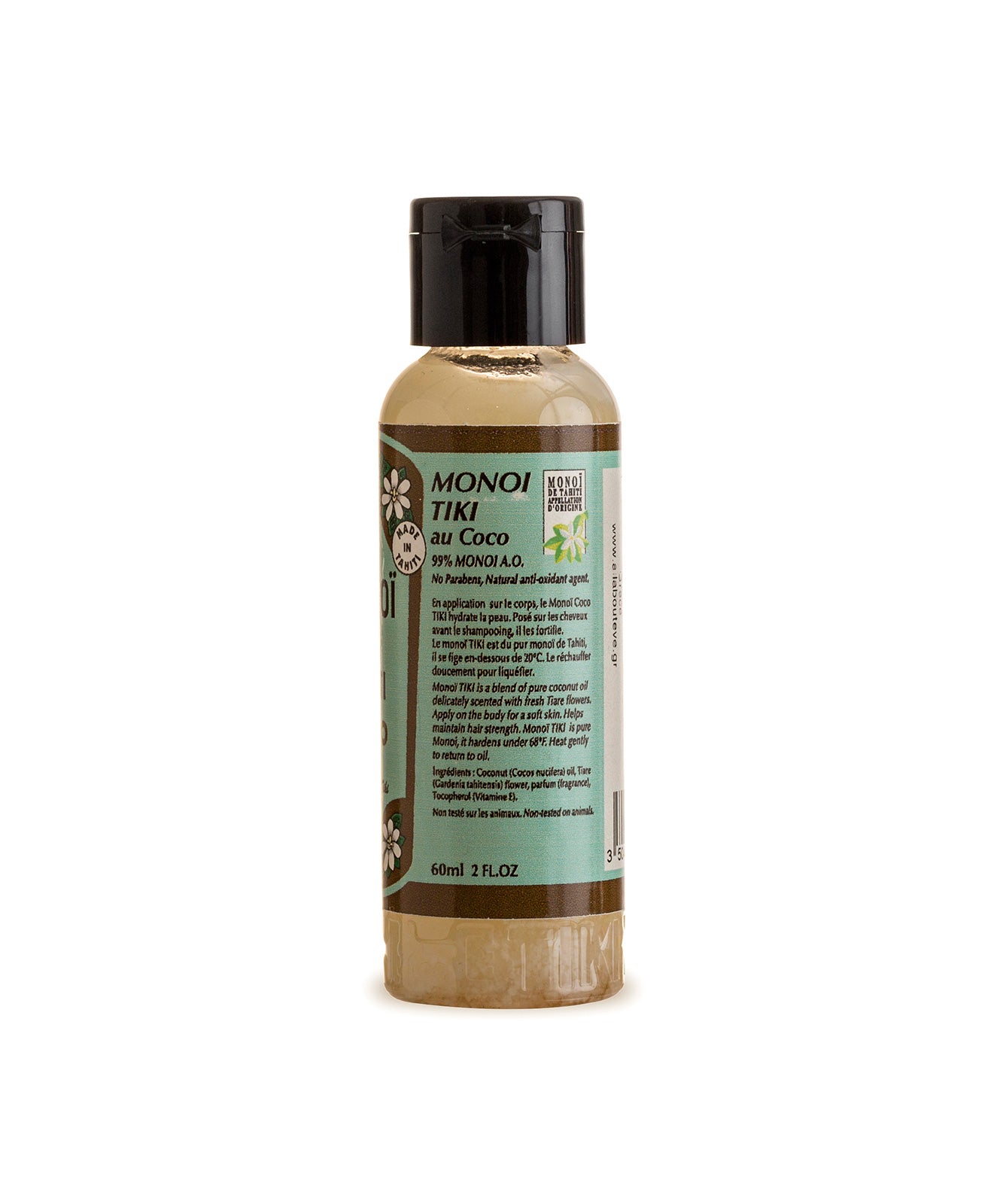 - Matière: 99% Monoï de Tahiti Appellation of Origin (AO). Cocos nucifera (coconut) oil, Gardenia Taitensis Flower Extract, Parfum (Fragrance), Tocopherol (Vitamine E), Coumarin